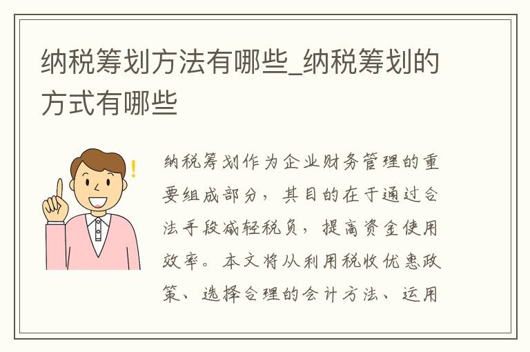 企业在合法合规的前提下合理规划税务负担,是提高企业竞争力的有效途径之一。本文将围绕企业纳税筹划的基本方法有哪些?这一主题,从选择合适的税收政策、优化企业组织结构、运用…