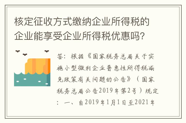 答:根据《国家税务总局关于实施小型微利企业普惠性所得税减免政策有关问题的公告》(国家税务总局公告2019年第2号)规定:一、自2019年1月1日至2021年12月31日,对小型微利企业年应…
