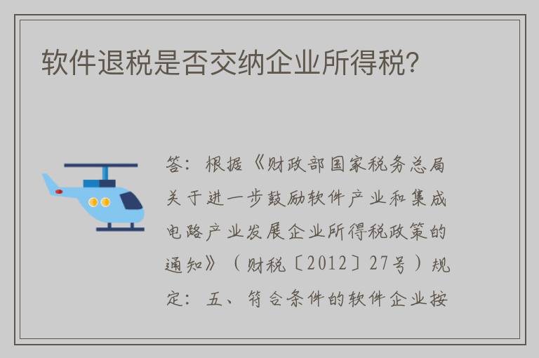 答:根据《财政部国家税务总局关于进一步鼓励软件产业和集成电路产业发展企业所得税政策的通知》(财税〔2012〕27号)规定:五、符合条件的软件企业按照《财政部国家税务总局关于软…